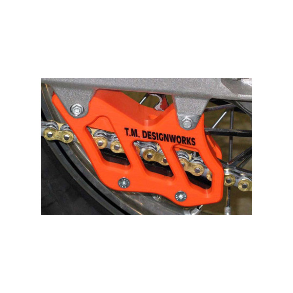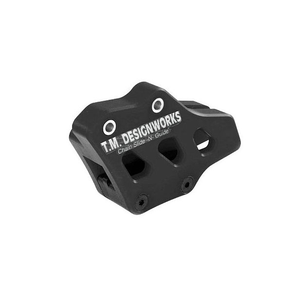 ファクトリーチームが使用し、多数のチャンピオンからの評価も高い樹脂製のリアチェーンガイド。独自の形状記憶プラスチック素材が衝撃によるチェーンガイドの破損を防ぐ。プラス3Tまで対応。
