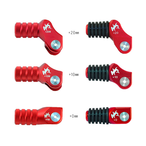 A6061 T-6アルミ合金を削り出しアルマイト加工を施した高強度シフトペダル、高い剛性により確実な操作フィーリングを生み出す。可倒式チップは前後のオフセット量0mm、+10mm、+20mmから選択が可能(一部の車種を除く)