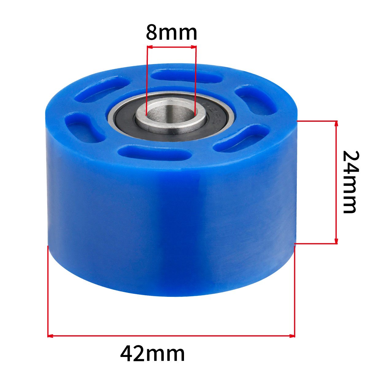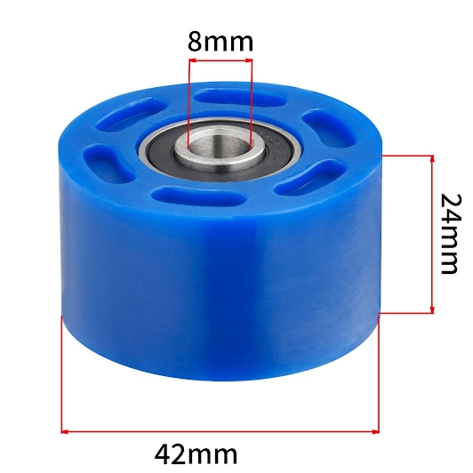 ベアリングを内蔵したチェーンローラー。チェーンの暴れやタルミを抑え、チェーンのスムーズな動きをサポート。直径が32mmのSサイズ、42mmのLサイズ、そしてCRFやKXF 等にも使用できる直径36mmのMサイズの計3タイプを設定。内径8mm。