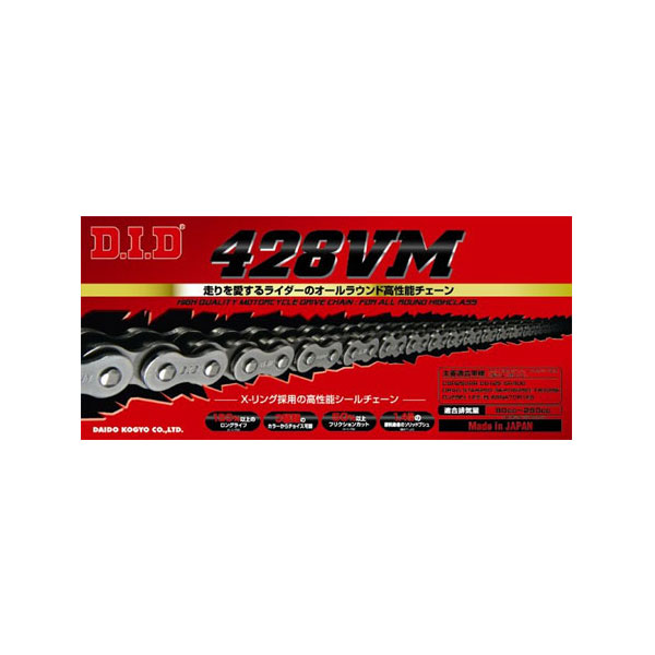 スーパースポーツからオフロードなど、さまざまな車種、幅広い排気量に対応したサイズを揃えた高性能ドライブチェーン。ワイドレンジにもかかわらずフリクションと耐久力を高次元でバランスさせた「X-リング」を採用。これにより、O-リングの1.5倍以上のロングライフを実現した。