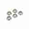 頭部が10mm、ネジ部は直径6mmのフランジナット。スチール製。5個又は25個入りのセット。