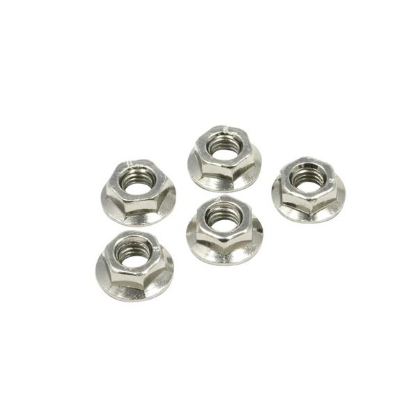 頭部が10mm、ネジ部は直径6mmのフランジナット。ステンレス製。5個又は15個入りのセット。