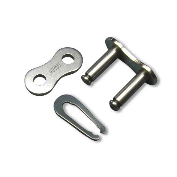 モーターサイクル用EK クリップ形継手リンク(SPJ)は、主にノンシールチェーン用の標準継手となります。外プレートと継手ピンがスキマバメ(ルーズフィット形)になっており、取付に専用工具は必要有りません。クリップはペンチ等を用いピンの溝に確実にはまる様取付下さい。