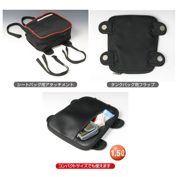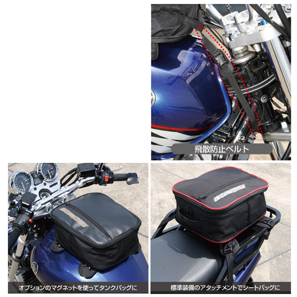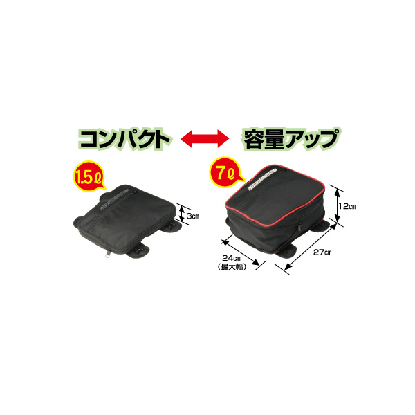 普段は邪魔にならないスリムな大きさですが、いざというとき容量アップして使える頼りになるエコバッグです。タンクバッグ(オプション対応)にもシートバッグにもなる携帯用バッグ。